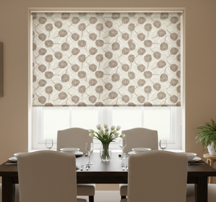 Rullegardin spisestue grå tulipanmønster med akantus