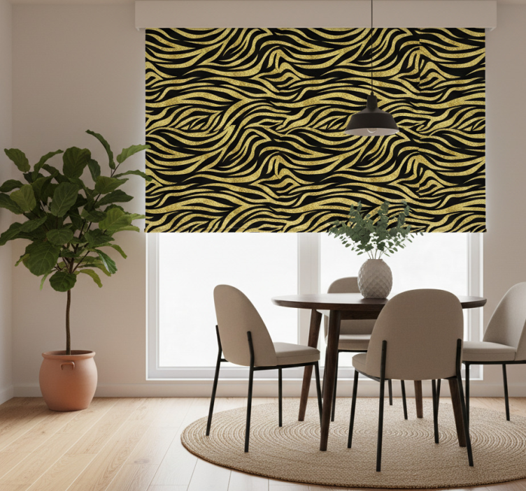 En rullegardin spisestue gyllent zebra mønster rullegardin spisestue gir ikke bare beskyttelse mot direkte sollys, men forbedrer også innredningen i rommet. Den setter en unik stil som fanger oppmerksomheten til gjestene dine. Når den senkes, skaper den et privat rom hvor du kan nyte måltidene dine uten forstyrrelser. Dette produktet er designet for å gi deg et både funksjonelt og vakkert hjem!