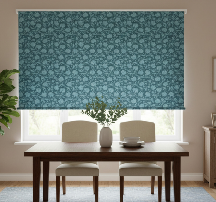 Rullegardin spisestue hemmelig hage blå