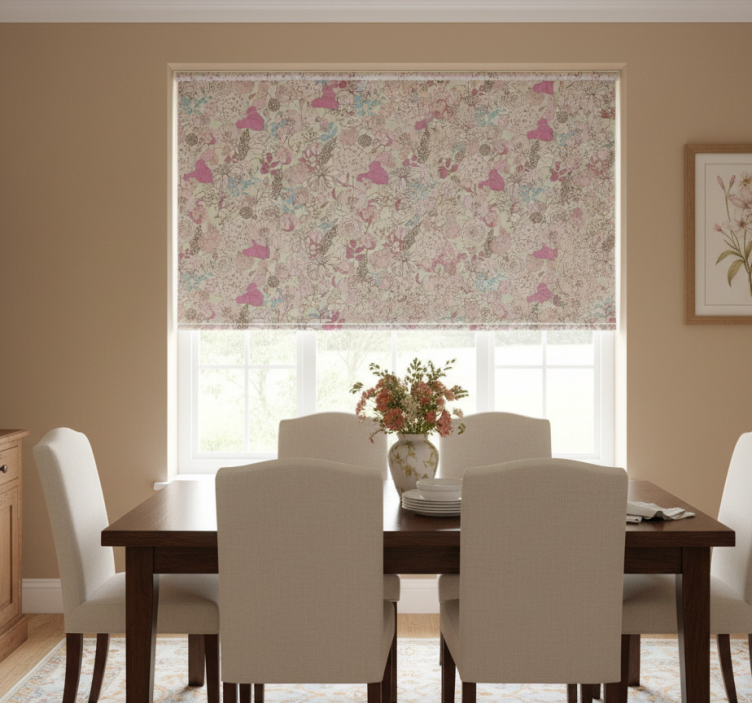 Rullegardin spisestue i blomstrete grandmillenial stil