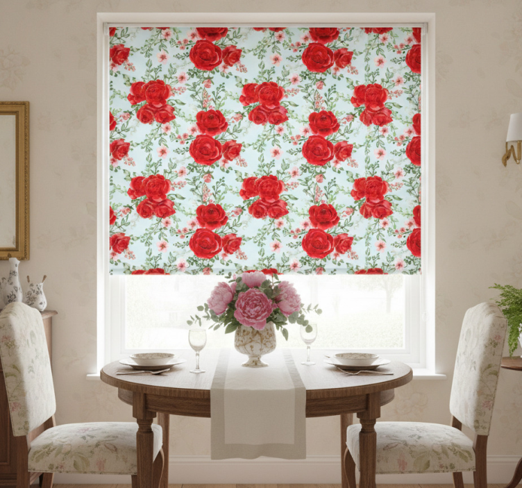 Rullegardin spisestue i grandmillenial blomsterstil