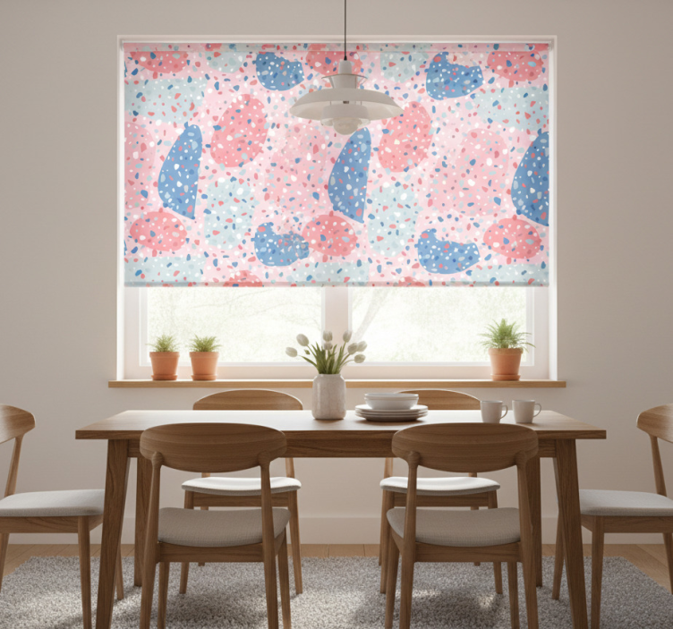 Rullegardin spisestue i rosa terrazzo rullegardin spisestue er ikke bare en funksjonell løsning for vinduer, men også en utsøkt dekorasjon som kan transformere rommet ditt! Den myke rosa nyansen og terrazzo-mønsteret tilfører en følelse av eleganse og stil, og gjør at spisestuen din skiller seg ut. Med denne rullegardinen kan du enkelt skape en koselig atmosfære som inviterer til lange middager og gode samtaler.