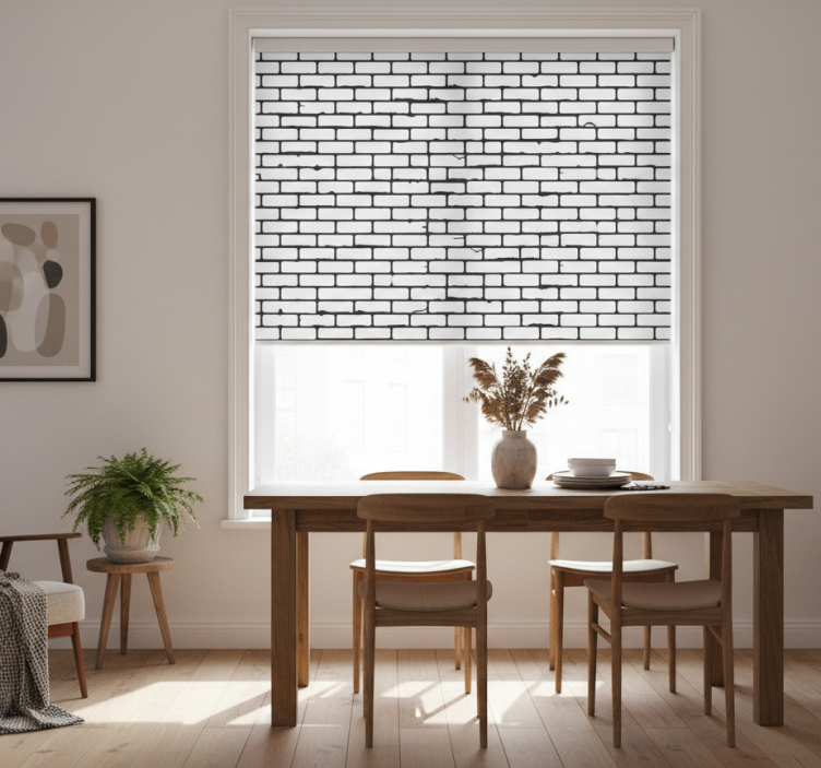 Med Rullegardin spisestue i slitt hvit mursteinmønster får du ikke bare et praktisk produkt, men også en dekorativ løsning som hever rommets estetikk. Den slitte hvite mursteinmønsteret gir en rustikk sjarm, som passer perfekt inn i moderne og tradisjonelle interiører. Denne rullegardinen skaper en koselig atmosfære og blir et blikkfang i spisestuen. La din personlighet skinne gjennom innredningen med dette stilige tillegget!