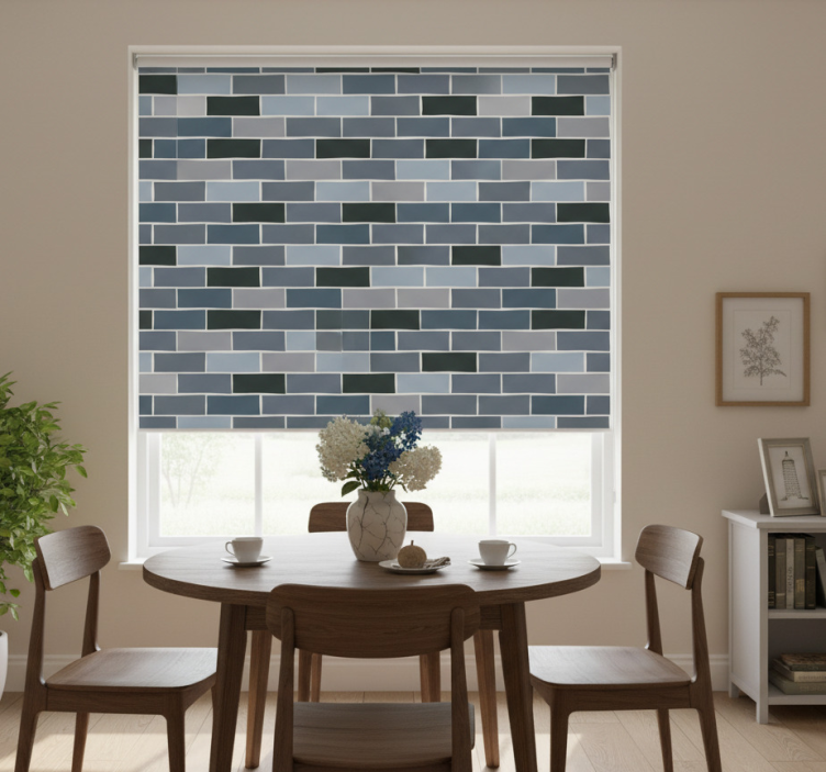 Rullegardin spisestue lys grå mursteinmønster