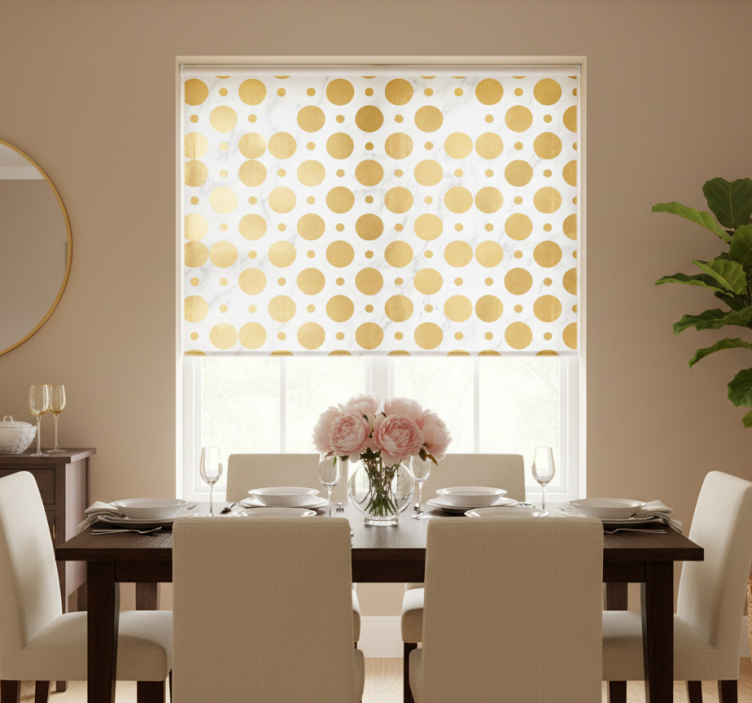 Rullegardin spisestue med gullmarmorpunkter rullegardin spisestue er det perfekte valget for deg som ønsker å heve innemiljøet. Den elegante gullmarmorfinishen gir et luksuriøst preg som gjør at spisestuen fremstår mer innbydende og stilfull. Ved å bruke denne rullegardinen som dekorasjon, kan du skape en harmonisk atmosfære hvor både familie og venner kan nyte måltidene. La den bli et blikkfang i rommet og bidra til å sette tonen for dine sammenkomster!