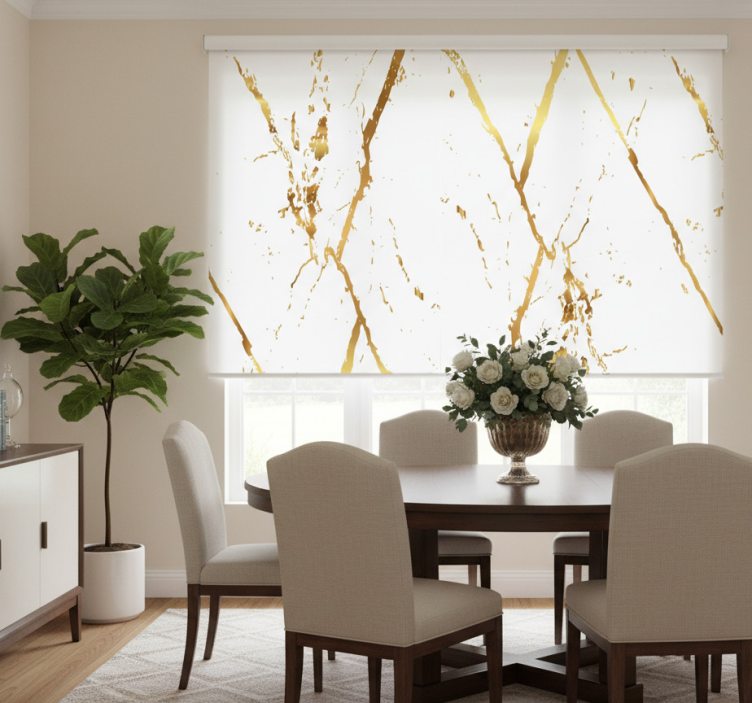 En rullegardin spisestue med gullmarmorstriper er ikke bare en praktisk løsning for å kontrollere lys og privatliv, men også en fantastisk dekorativ komponent. Den tilfører en sofistikert atmosfære til spisestuen, og dens unike design vil fange oppmerksomheten til alle som kommer inn. Å velge en rullegardin spisestue betyr å gi rommet ditt et løft med stil og eleganse, samtidig som du nyter de praktiske fordelene av optimal lyskontroll.