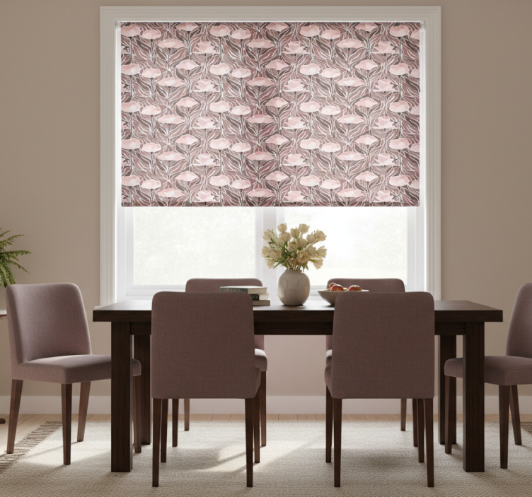 Rullegardin spisestue med vintage abstrakt mønster