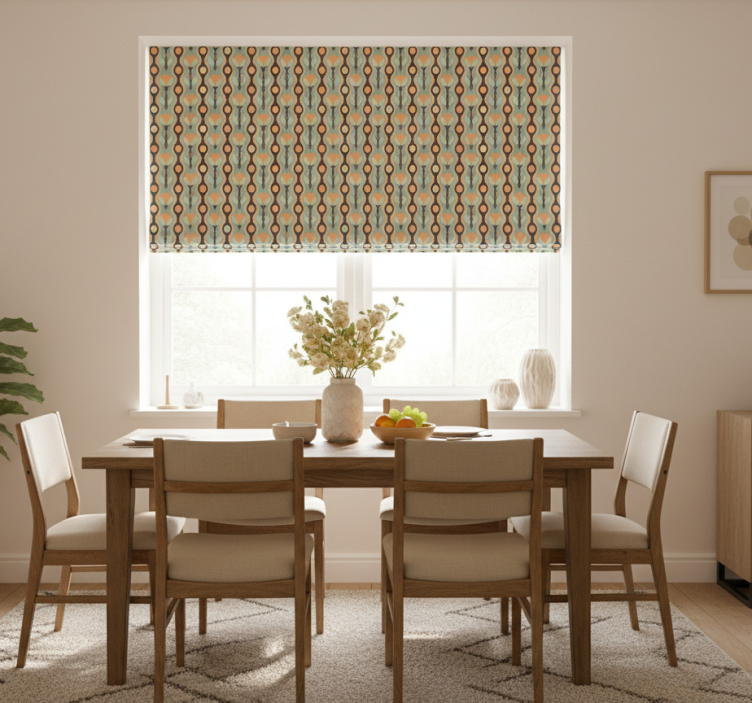 Rullegardin spisestue oransje uregelmessig blomst