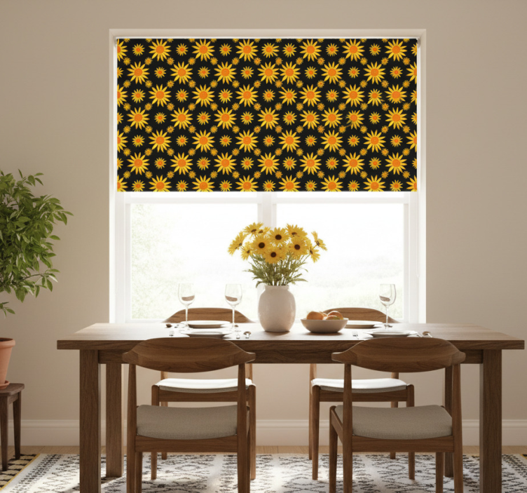 Rullegardin spisestue solblomst svart bakgrunn