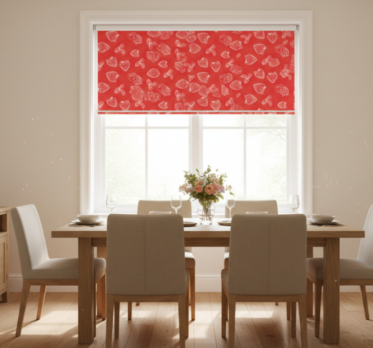 Rullegardin spisestue søtt jordbærmønster