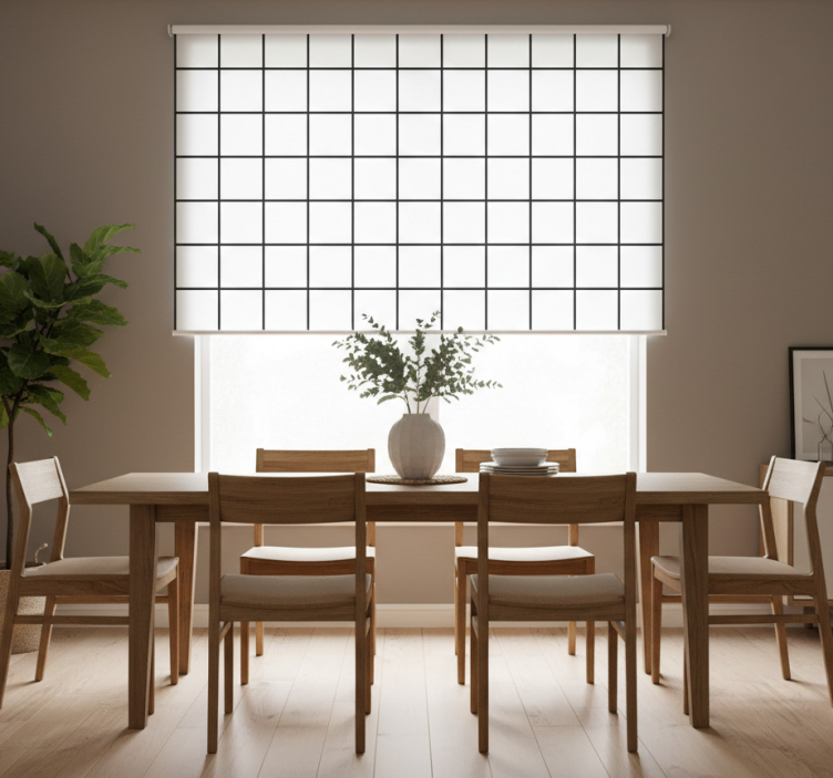 Rullegardin spisestue ujevnt rutemønster