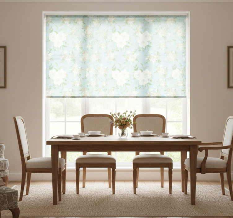 Rullegardin spisestue vill blomstermønster stil