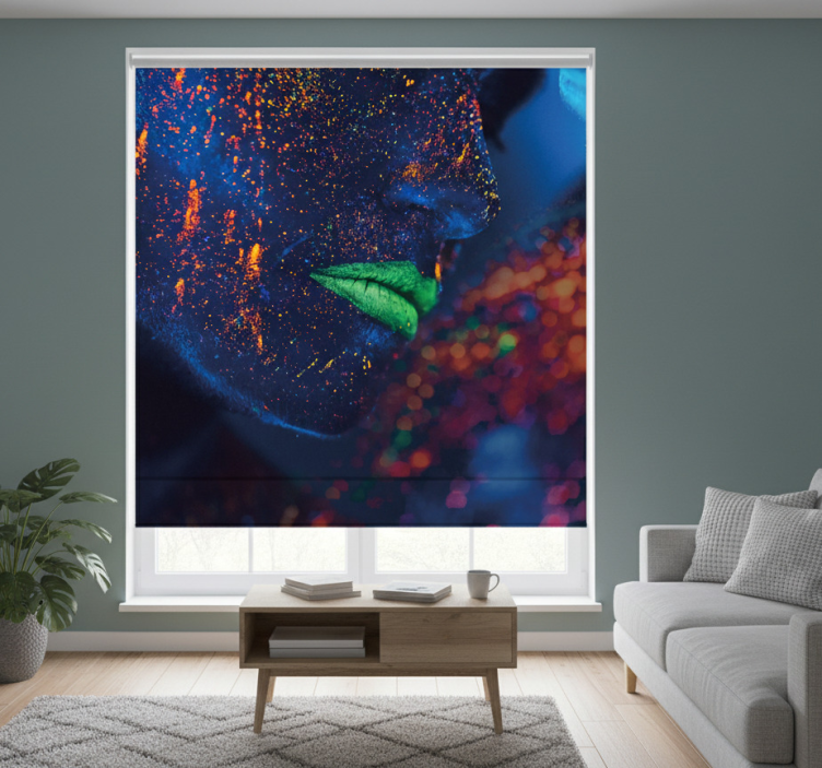 Referanse:: E8615Oppdag skjønnheten i vår Rullegardin stue fargerik munn håndmalt som kombinerer kunstnerisk design med praktisk funksjonalitet. Den fargerike, håndmalte grafikken gir et unikt preg til ditt hjem, samtidig som den effektivt beskytter mot direkte sollys og gir deg privatliv når du trenger det. Med en enkel montering kan du raskt forvandle stuen til en koselig oase!