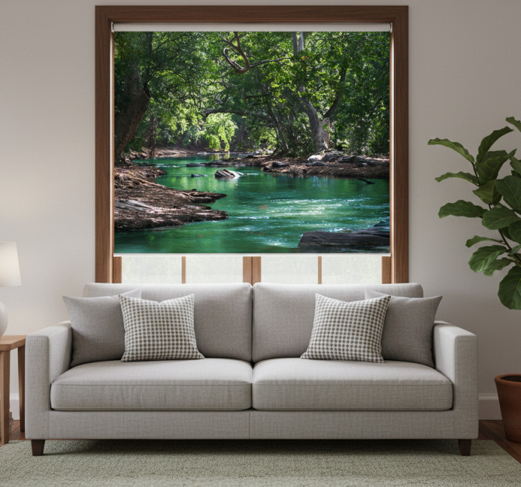 Å velge Rullegardin stue skog og elv rullegardin stue gir en perfekt balanse mellom stil og funksjonalitet. Den grafiske designen av skog og elv skaper en beroligende atmosfære som vil imponere gjestene dine. Denne rullegardinen forbedrer ikke bare innredningen, men beskytter også mot direkte sollys og gir deg ønsket personvern. La denne vakre gardinen bringe naturen inn i hjemmet ditt!