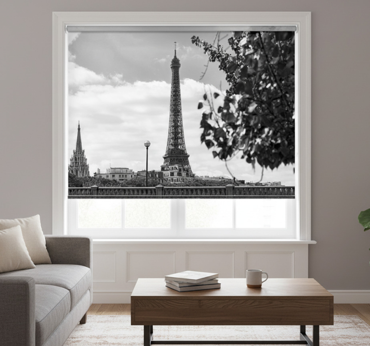 Rullegardin stue svart og hvit eiffeltårn