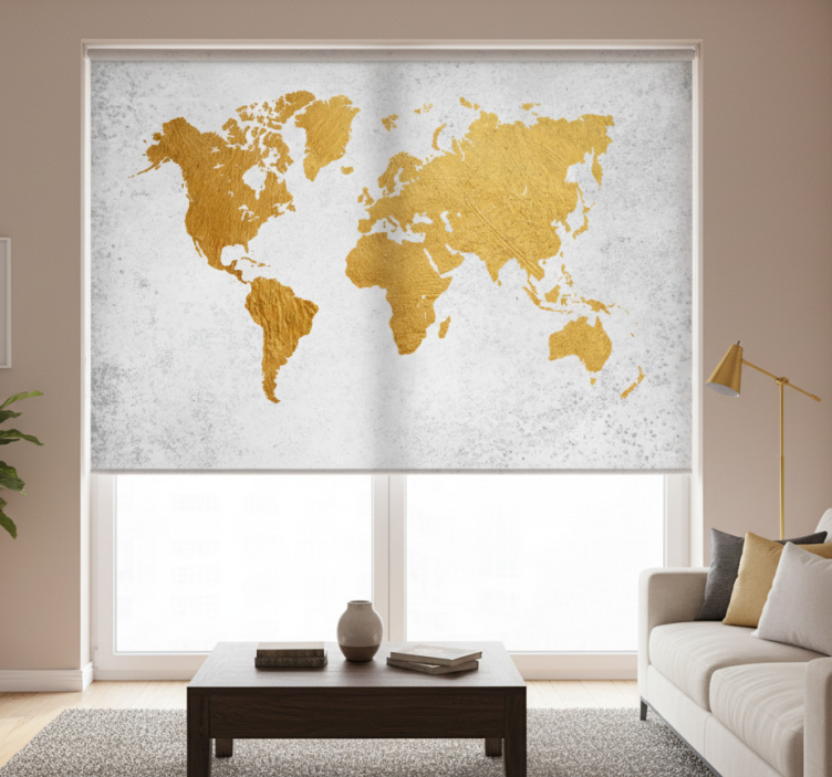 Å velge Rullegardin stue verdenskart gull rullegardin stue som dekorasjon er en inspirerende måte å forvandle hjemmet ditt på. Det grafiske designet tilføyer en kunstnerisk dimensjon til stuen, og verdenskartet inviterer til drømmer om reisemål og eventyr. Denne rullegardinen gjør det enkelt å skape en atmosfære av stil og eleganse, samtidig som den tilbyr praktiske fordeler som lyskontroll og privatliv.