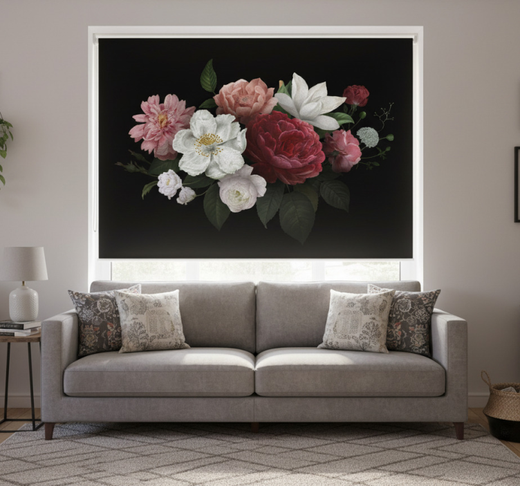 Rullegardin stue vintage roser på svart bakgrunn rullegardin stue gir et sofistikert preg til ethvert rom. Den elegante designen skaper en atmosfære av varme og stil, og gjør den perfekt for både moderne og tradisjonelle interiører. La denne rullegardinen være den perfekte dekorasjonen som fremhever din personlige stil og gir et unikt preg til hjemmet ditt!