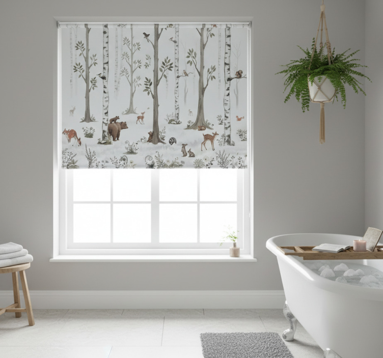En rullegardin trær lekne skisser av skog rullegardin trær er ikke bare en praktisk løsning for å regulere lys og personvern, men også en stilfull dekorasjon som hever stemningen i hjemmet ditt! Den kreative designen bringer naturen inn i stuen, noe som skaper en rolig og avslappende atmosfære. Å ha et slikt kunstnerisk uttrykk i vinduet ditt kan virkelig forvandle ethvert rom til en oase av velvære og glede. Hvem ville ikke ønsket å nyte en vakker utsikt over en skog, selv når man er innendørs?