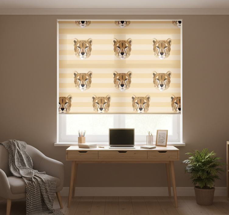 Den Rullegardin ungdom leopardhode rullegardin ungdom er den perfekte dekorasjonen for å tilføre stil og personlighet til ethvert rom. Det spennende leopardmønsteret gir et friskt pust til interiøret og kan enkelt tilpasses ulike stiler og farger. Med denne rullegardinen kan ungdommen uttrykke sin kreativitet og smak på en unik måte. Den skaper ikke bare en vakker atmosfære, men gir også funksjonalitet ved å regulere lys og personvern. La rommet skinne med denne fantastiske dekorasjonen!