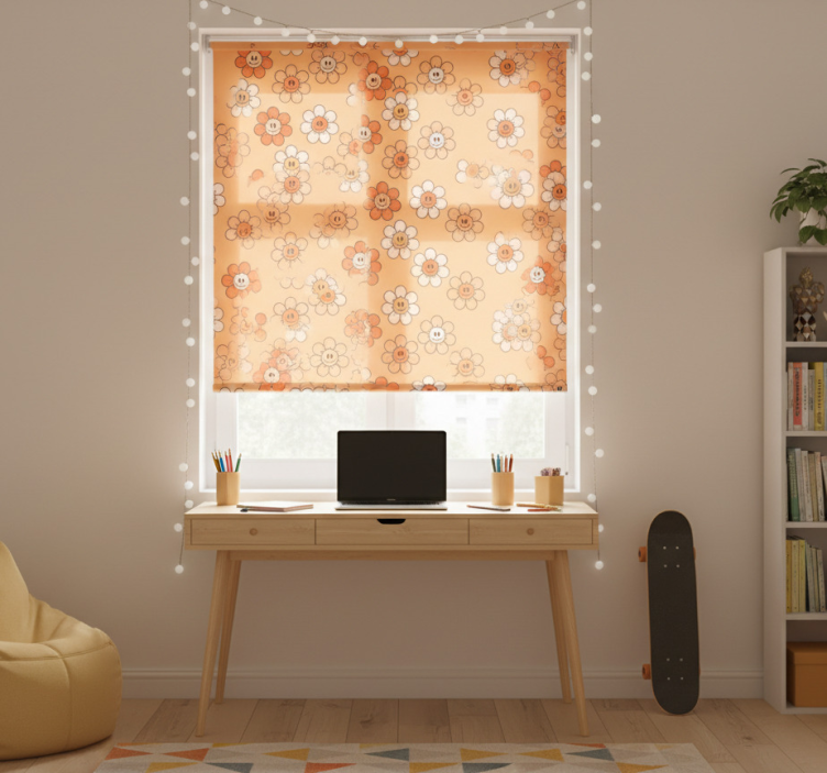 Den Rullegardin ungdom med oransje smilende fjes rullegardin ungdom er ikke bare et praktisk valg, men også en fantastisk dekorasjonsmulighet! Med sitt glade design skaper den en positiv atmosfære som inspirerer til kreativitet og glede. Den lyse oransje fargen og de smilende ansiktene gir liv til rommet, og gjør det til et sted hvor ungdom kan føle seg hjemme og være seg selv. La denne rullegardinen bli en del av din innredning og se hvordan den forvandler rommet!