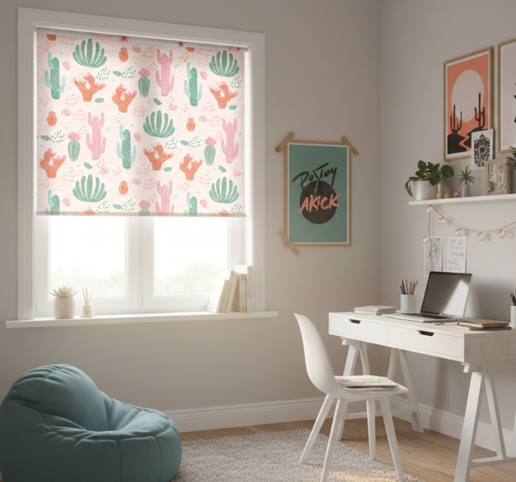 Referanse:: E7511Velkommen til en verden av stil og funksjonalitet med vår Rullegardin ungdom med retro farget kaktusmønster! Dette unike designet kombinerer et lekent kaktusmønster i friske farger med grafiske elementer som virkelig fanger oppmerksomheten. Den vil umiddelbart løfte atmosfæren i ethvert rom, samtidig som den gir en praktisk løsning for lyskontroll og privatliv. Enten du ønsker å skape en avslappende oase eller et inspirerende rom for kreativitet, er denne rullegardinen det perfekte valget!