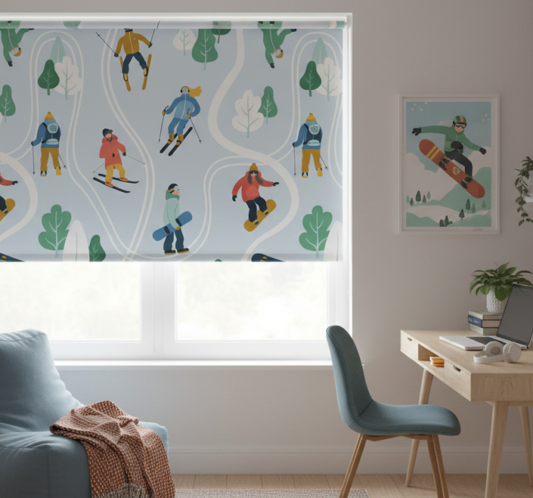 Med vår rullegardin ungdom blå skikjøring rullegardin ungdom kan du skape et inspirerende og livlig miljø i ungdomsrommet. Den friske blå fargen og de spennende skikjøringsmotivene bidrar til å gi en unik stil som ungdommer vil elske. Dette produktet er ikke bare en praktisk løsning for å skjerme for sollys, men også et dekorativt element som forbedrer rommets atmosfære. La kreativiteten blomstre med et design som både ungdommer og foreldre vil sette pris på!