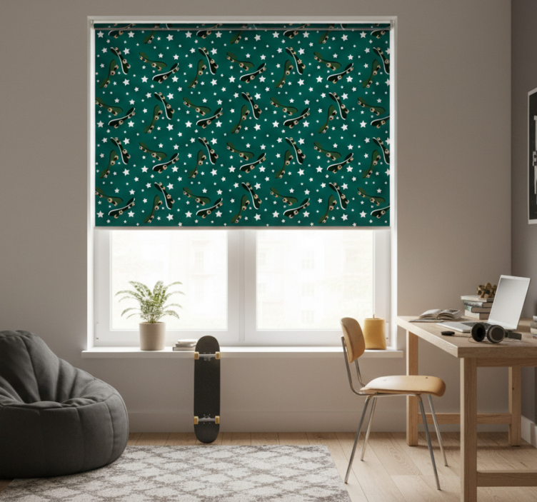 Med Rullegardin ungdom skate og stjerner rullegardin ungdom vil du enkelt kunne forbedre dekorasjonen i rommet ditt! Dette produktet gir ikke bare et friskt og moderne utseende, men det skaper også en atmosfære som inspirerer til kreativitet og lek. Den grafiske stilen med skate- og stjernedesign gjør det til et naturlig valg for unge mennesker som ønsker å uttrykke sin personlighet gjennom interiøret. Gardinen lar deg enkelt regulere romtemperaturen og gir trygghet ved å la deg se uten å bli sett. La stjernene skinne i ditt rom!