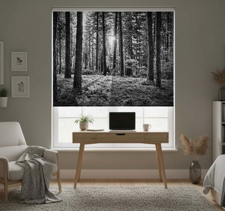 Det er mange grunner til at Svart rullegardin monokrom skog er det perfekte valget for ditt hjem! Denne svart rullegardin tilfører en moderne touch til ethvert rom samtidig som den skaper en koselig atmosfære. Den stilige, monokrome designen gjør at den passer inn i ulike interiørstiler, fra minimalistisk til bohemsk. La dette produktet heve din dekorasjon og bli en del av hjemmets sjel!