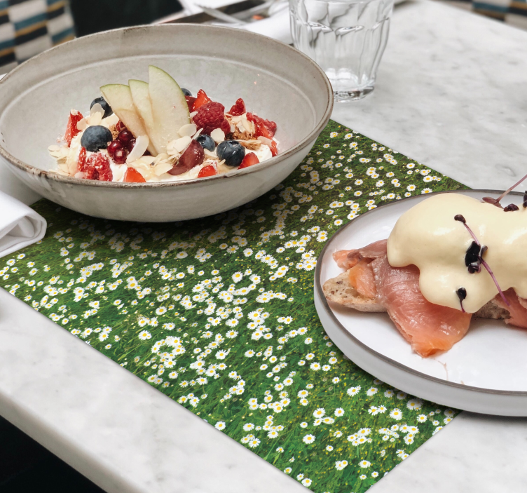 Velkommen til en verden av skjønnhet med vår Spisebrikke tekstur friskt blomsterdesign. Dette unike designet er en hyllest til naturen, med et nydelig mønster av blomster, blomstret og blomst som minner om en frodig eng eller en fargerik hage. Hver detalj er nøye utformet for å skape en floral opplevelse som bringer grønn glede inn i hjemmet ditt. La deg fascinere av tusenfryd, som lyser opp bordet ditt med sin friske tilstedeværelse!