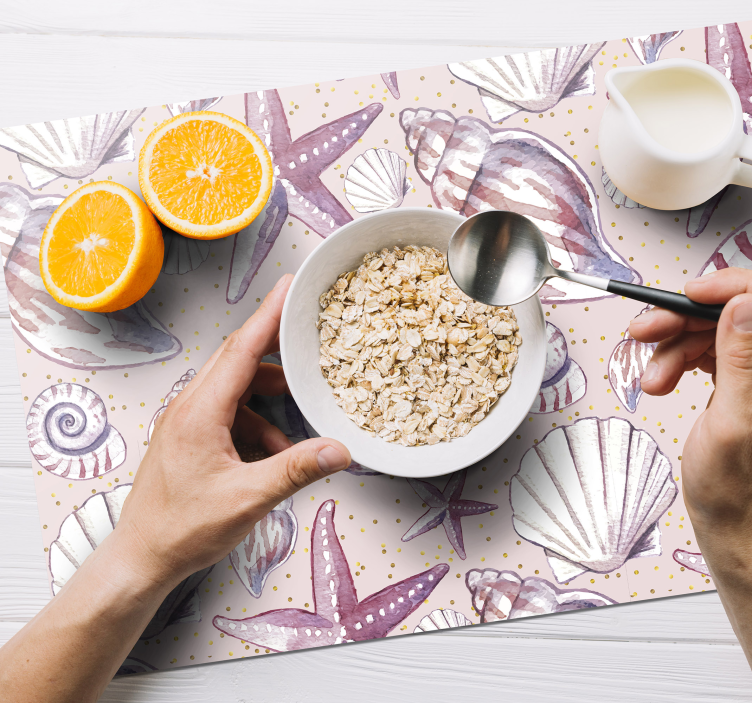 Oppdag vår Spisebrikke tekstur skjellmønster, som bringer havets skjønnhet inn i hjemmet ditt! Med et design som fanger essensen av skjell, sjøstjerner og sand, gir denne spisebrikken en følelse av ro og harmoni. De myke fargene og de naturlige elementene i sjølivet gir et unikt preg på borddekkingen, perfekt for enhver anledning!