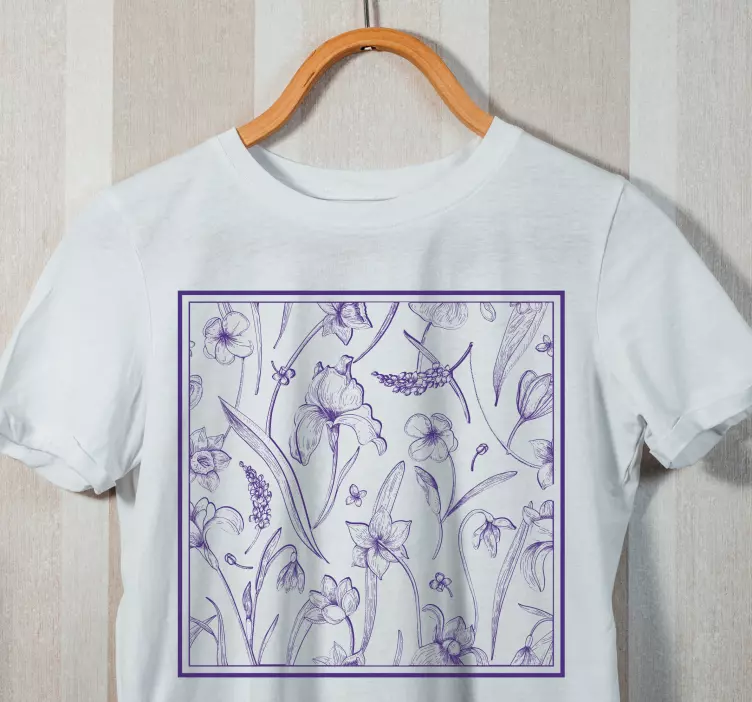 Oppdag den fantastiske Botanisk mønster arrangement t-skjorten, hvor grafikken fanger essensen av naturen med vakre krokus og blomster som pryder designet. Den blomstrete bakgrunnen i lilla nyanser gir en floral følelse, perfekt for den som elsker kunst og illustrasjon. Dette er ikke bare en t-skjorte, det er en hyllest til naturen, en skisse av skjønnhet som kan bæres med stolthet!