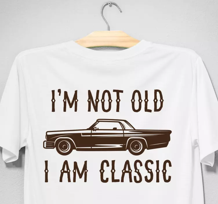 Referanse:: T4519Dette designet har en vintage bil sammen med leken tekst, som fremhever en humoristisk uttalelse om aldring. Det fanger perfekt en nostalgisk stemning samtidig som det appellerer til familiedynamikk, noe som gjør det ideelt for far-sønn bonding øyeblikk.