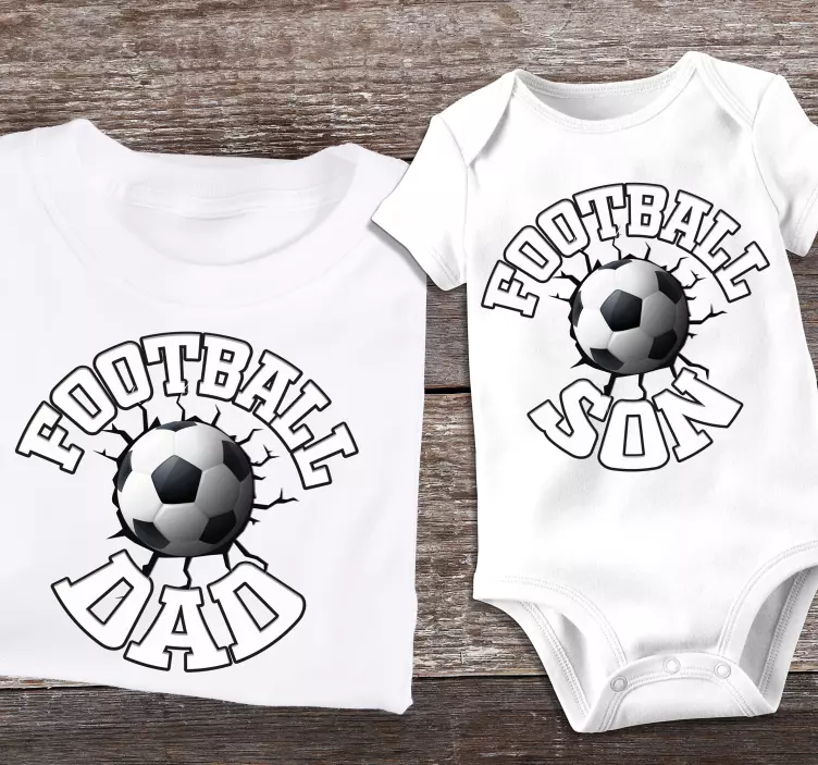 Designet er et far og sønn fotball uttrykk. Den illustrerer fotball mot en sprukket vegg, og den er undertekst med tekst. Den teksten lyder henholdsvis 'fotballsønn' og 'fotballpappa'.