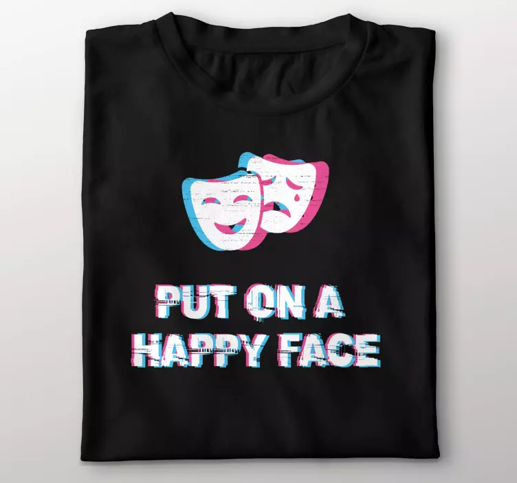 Oppdag vår unike Glad fjes sitat t-skjorte, designet med et morsomt sitat og en livlig illustrasjon av et ansikt som fångar essensen av glede! Denne t-skjorten er inspirert av teater og opptreden, og gir en gledelig følelse som garantert vil skape latter. Med sitt kreative design er den perfekt for enhver anledning!