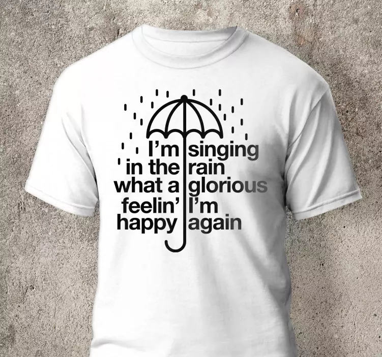 Oppdag vår Glad regn paraply sitat t-skjorte, en grafisk t-skjorte som lyser opp selv den gråeste regnværsdagen! Designet inkluderer en paraply som står i kontrast til regnet, omgitt av inspirerende tekster som uttrykker en følelse av lykke og glede. Denne t-skjorten gir deg muligheten til å synge i regnet med stil, og den strålende grafikken setter virkelig tonen for positive vibber!