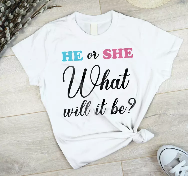 Oppdag vår unike He eller hun spørsmål spedbarn t-skjorte, designet med lekne farger og en morsom kalligrafi som virkelig fanger oppmerksomheten! Denne t-skjorten er perfekt for å feire nye liv, med en design som kombinerer humor og familieglede. Enten det er en svangerskapsfeiring eller et barselbesøk, er denne t-skjorten en utmerket måte å avsløre kjønn på samtidig som den gir et smil til alle som ser den.