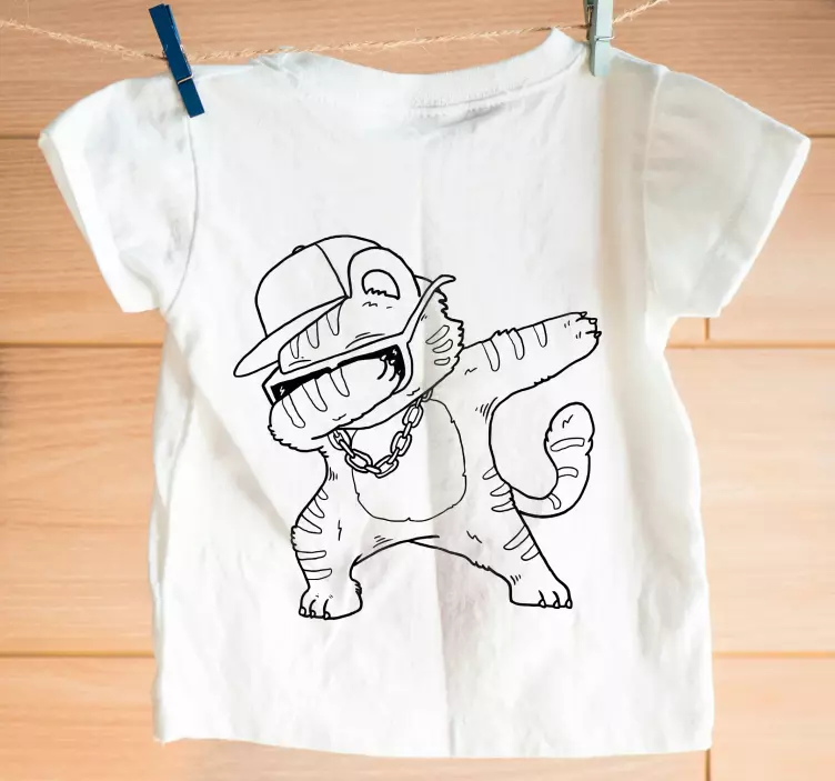 Referanse:: T5146Dette designet har en sjarmerende katt med solbriller og caps, som utstråler en morsom og trendy stemning. Den tegneseriestilen fremhever lekenhet, noe som gjør den perfekt for barn. Lys og engasjerende, skiller dette stykket seg ut med sin unike karakter og ungdommelige appell.
