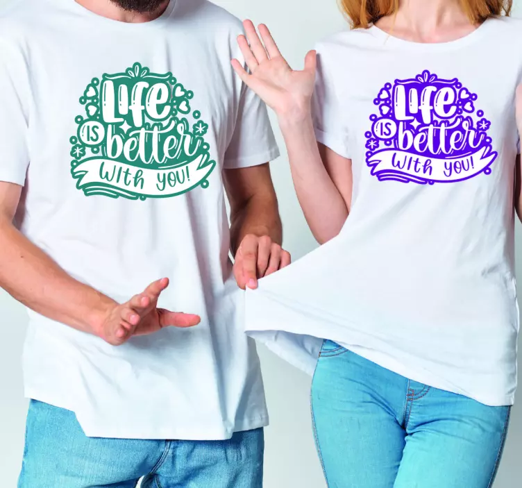 Informasjon Livet er bedre med deg bokstaver Par t-skjorte
