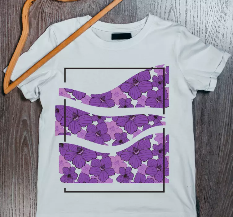 Oppdag den unike mor og datter t-skjorte med blomstermotiv eleganse, som kombinerer moderne design med et vakkert floral preg. Denne t-skjorten har et stilrent grafisk uttrykk med krokus i lilla farger og abstrakte former som skaper en leken, men elegant atmosfære. Med sin moderne illustrasjon av blomster, er denne t-skjorten perfekt for vårmote og feiring av båndet mellom mor og datter!