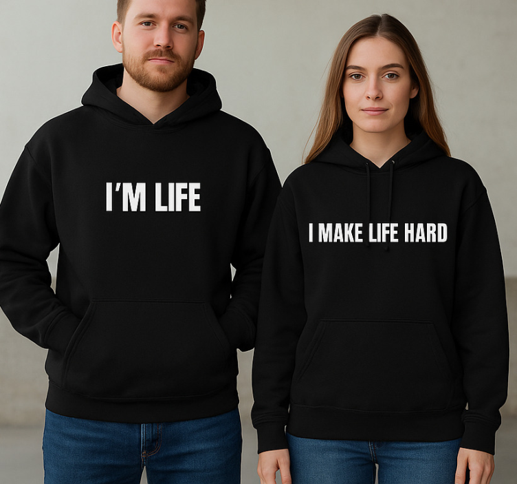 Det finnes mange grunner til å velge vår par t-skjorte jeg gjør livet vanskelig par t-skjorte. Først og fremst er den ikke bare en t-skjorte, men et uttrykk for din personlighet! Den unike grafikken vil definitivt tiltrekke seg oppmerksomhet og skape samtaler. Enten du bruker den alene eller sammen med en venn, vil denne t-skjorten hjelpe deg med å formidle hvem du er på en morsom og kreativ måte. Perfekt for hverdagsbruk eller spesielle anledninger!
