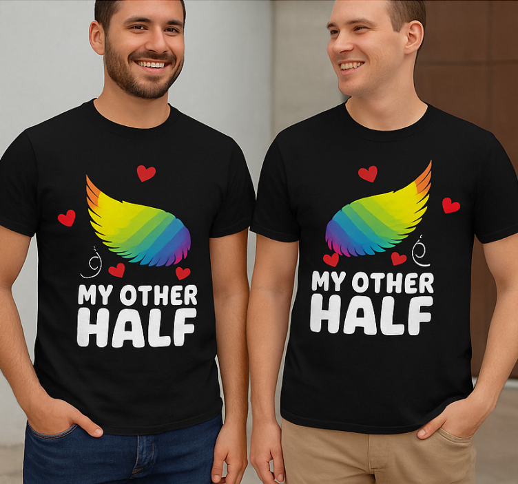 Referanse:: T5484Oppdag vår stilige Par t-skjorte lgbt min andre halvdel, et unikt design som feirer kjærlighet og mangfold! Med en grafisk fremstilling som fanger øyet, har denne t-skjorten en rund hals, korte ermer og er laget av 85 % bomull og 15 % viskose. Den er tilgjengelig i både svart og hvit, og tilbyr en perfekt kombinasjon av komfort og stil. Uansett om du bruker den på en romantisk date eller en uformell sammenkomst med venner, vil denne t-skjorten være et blikkfang!