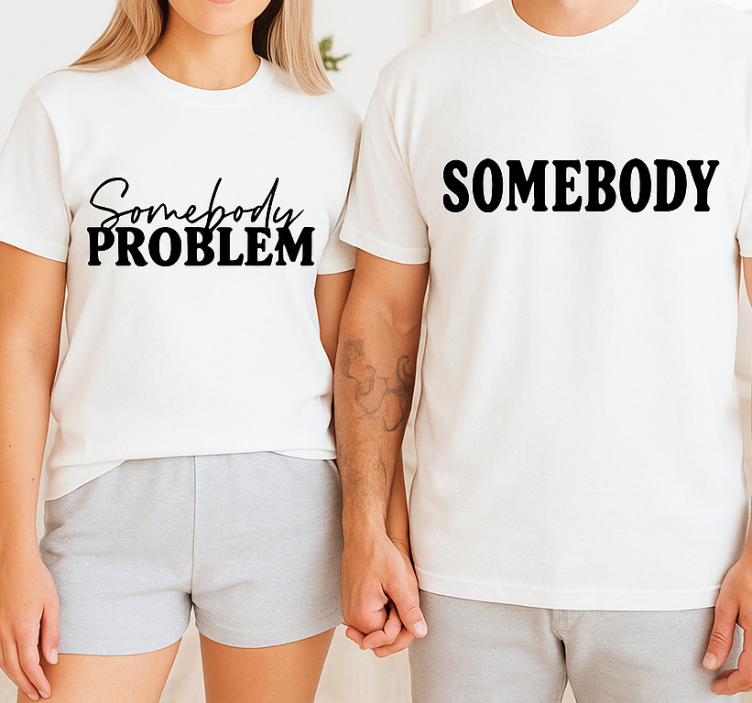 Par t-skjorte noens problem er det ideelle valget for par som ønsker å uttrykke seg med stil! Denne t-skjorten er perfekt for både hverdagsbruk og spesielle anledninger. Med sin enkle, men likevel iøynefallende design, kan den brukes på alt fra romantiske dater til vennemiddager. Det er en flott måte å vise frem kjærligheten eller vennskapet på, samtidig som dere ser fantastiske ut sammen. Ikke gå glipp av muligheten til å skape minner med par t-skjorte som virkelig skiller seg ut!