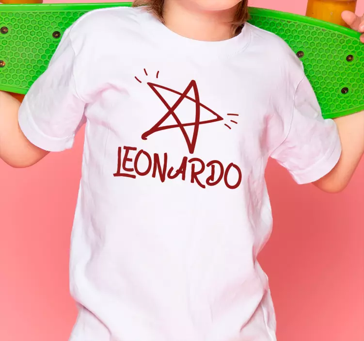 Referanse:: T5005Dette livlige designet viser en leken stjerne og et personlig navn. Rettet mot barn, kombinerer det ungdommelig energi med kreativitet. Perfekt for å feire individualitet, legemliggjør det en morsom ånd mens det accessoriserer aktiviteter som skateboarding og utendørs lek.