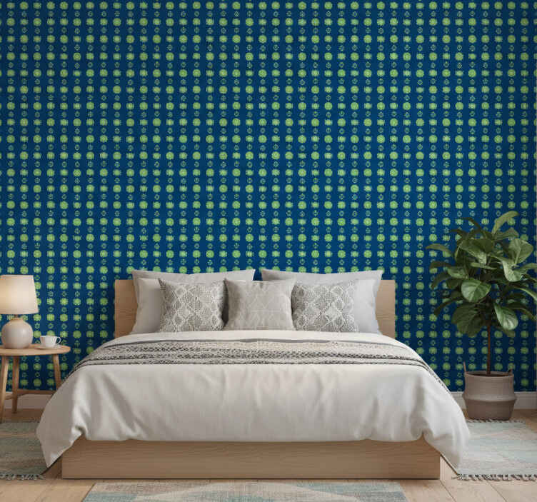 Tapet blomster grønn og blå tradisjonell polsk mønster