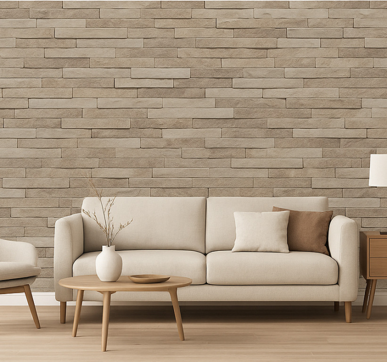 Tapet stue med strukturert steinlook