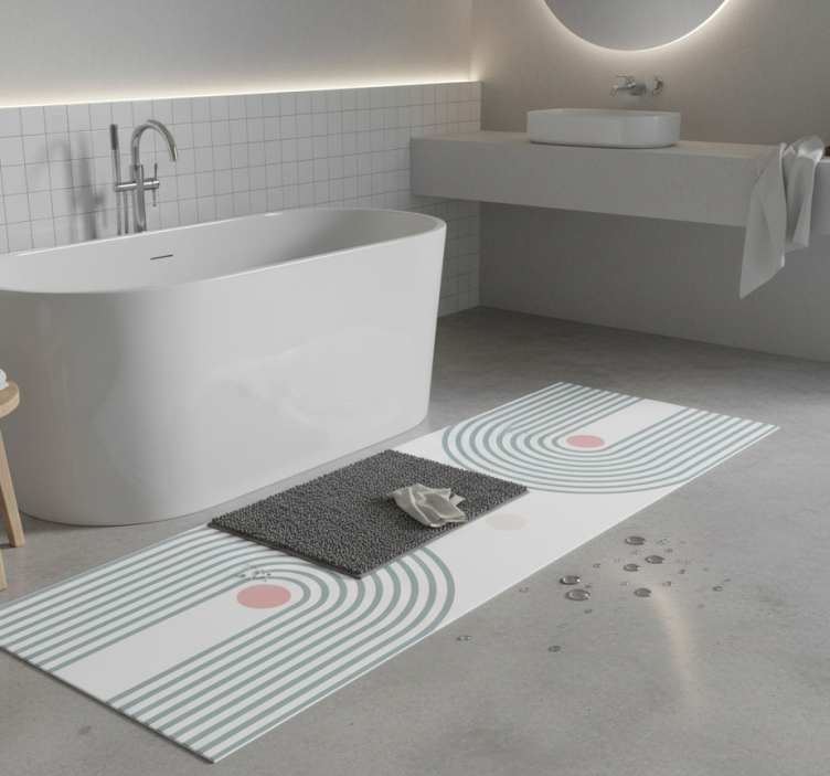 Referanse:: R23597Oppdag det Abstract minimalist bad vinyl teppe, et tidløst design som kombinerer grafiske elementer med moderne estetikk. Dette vinylteppet er ikke bare en fryd for øyet, men også praktisk med sin antiskli funksjon og ripestyrke. Det gir en behagelig følelse under føttene og beskytter gulvet ditt på en stilig måte!