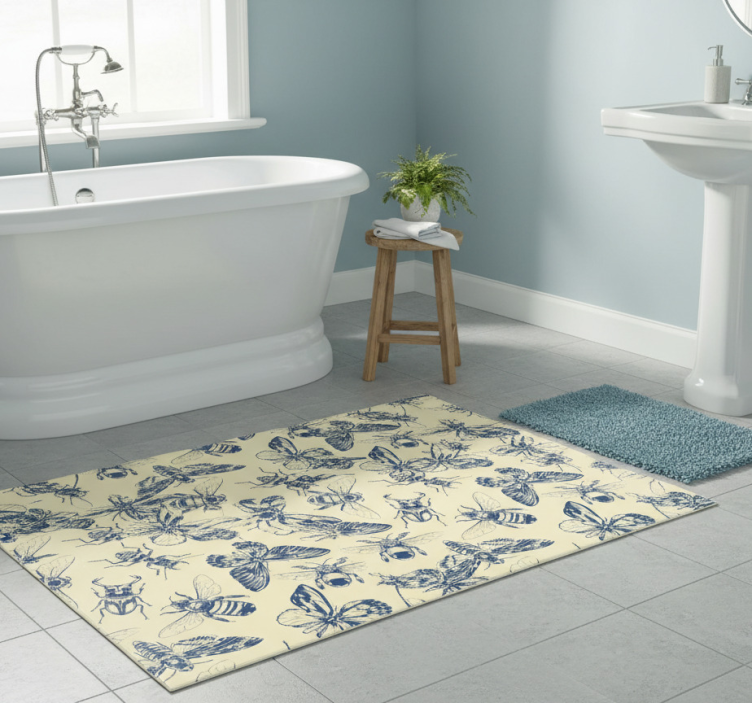 Bad vinyl teppe blå og gul bie og sommerfugl mønster