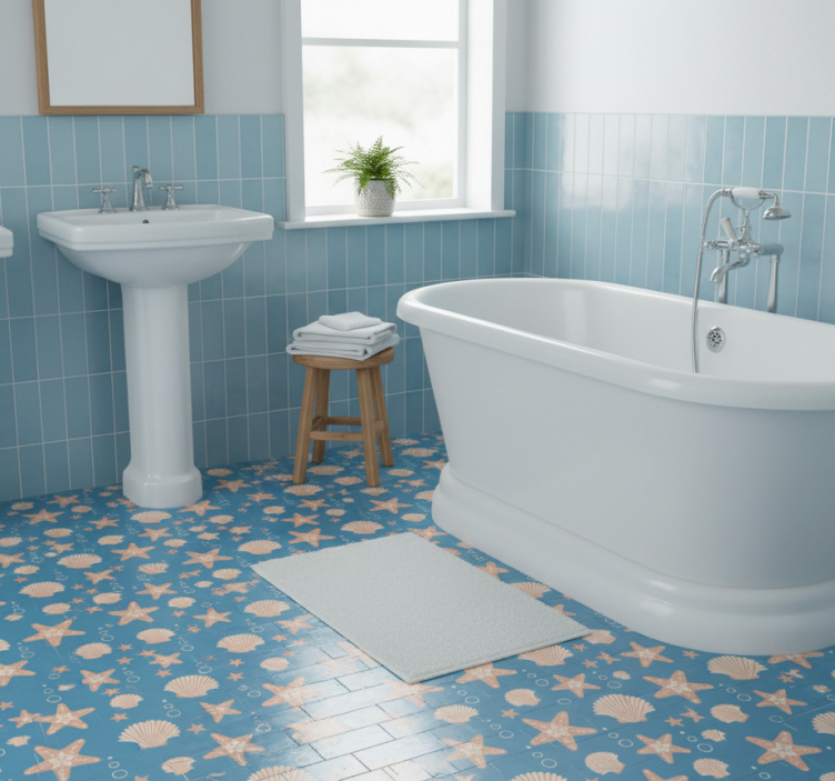 Bad vinyl teppe fiskestjerner og skjell under havet
