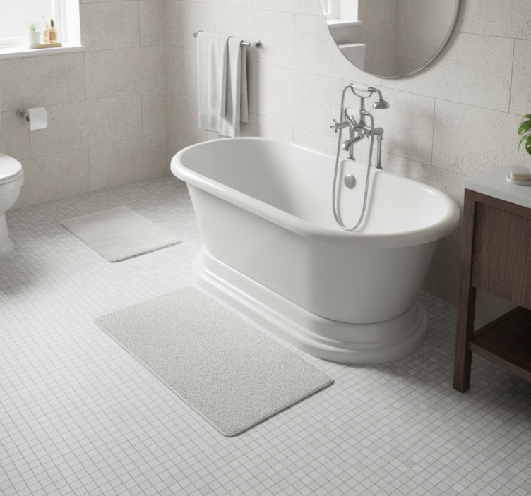 Bad vinyl teppe hvit grå flis mosaikk