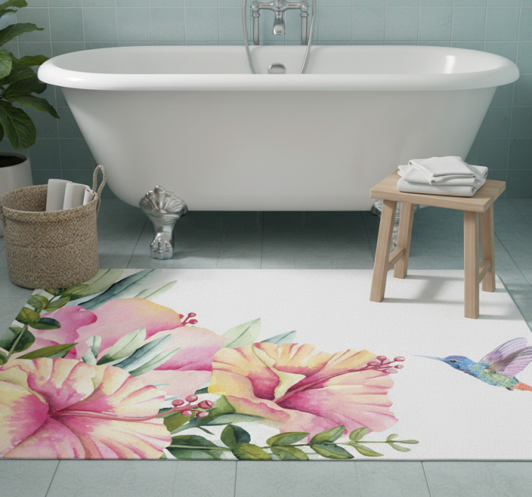 Et bad vinyl teppe med blomster og kolibri er mer enn bare et dekorativt element; det forvandler rommet! Dette teppet gir en frisk og livlig atmosfære, og gjør det til et ideelt valg for å piffe opp badet ditt. Med sine varme farger og naturinspirerte design, bidrar det til å skape en avslappende oase. La blomstene og kolibriene ta deg med på en reise av skjønnhet og harmoni!